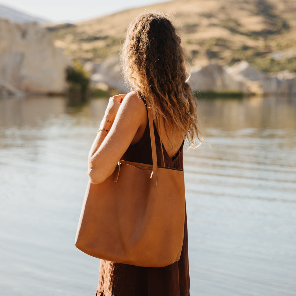 BEST SELLER! | Meet Bri, our raw edged leather tote bag. There is beauty in simplicity, which is why we left this tote unlined to highlight the natural leather. With a large main compartment and internal hanging zip pocket, Bri will help keep you organised as you move from work to weekend. The slim shape and soft comfortable shoulder straps will give you scope to keep the Bri close, making this a great shopper tote or travel bag.