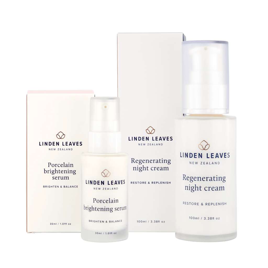 Introducing the ‘Perfect Duo’ – a harmonious bundle of Linden Leaves’ Porcelain Brightening Serum and Regenerating Night Cream to rejuvenate your skin day and night.